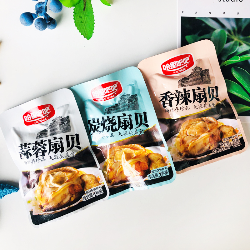 Scallop meat open bag ready-to-eat casual seafood snack charcoal grilled spicy garlic scallops 500g fresh cooked specialty