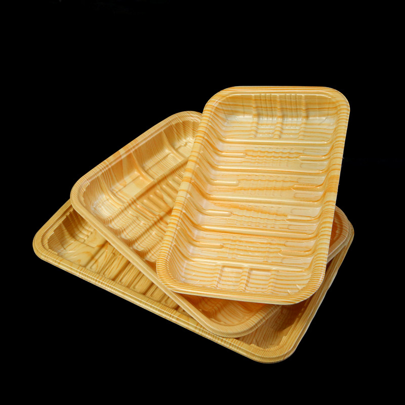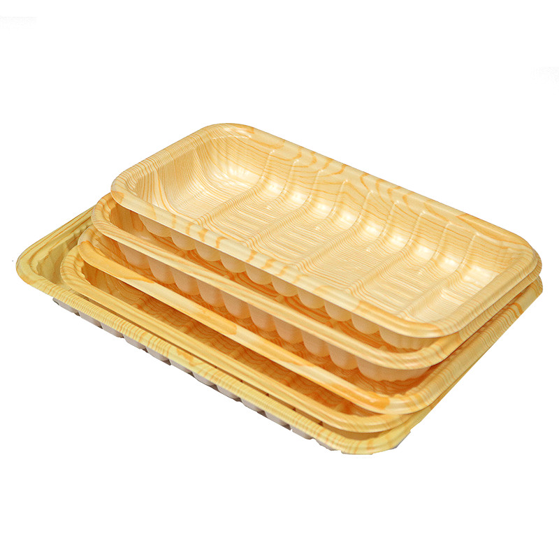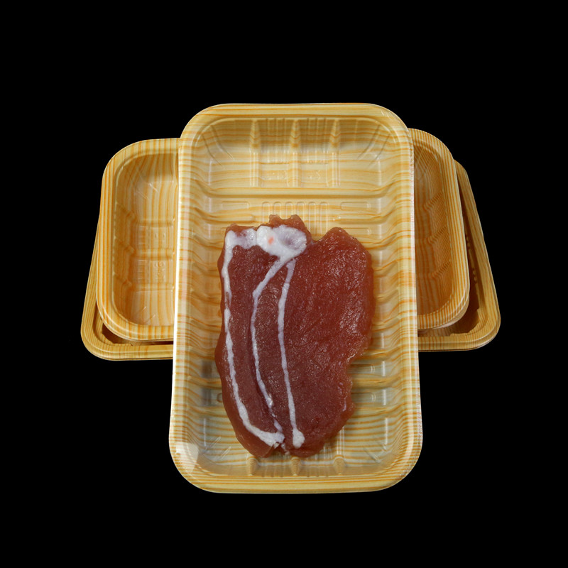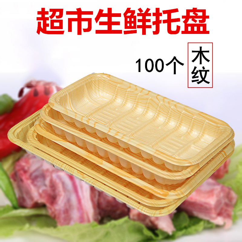 Wood grain disposable fresh tray Supermarket cold fresh meat packing box No lid thickened pig, cow and mutton packing box