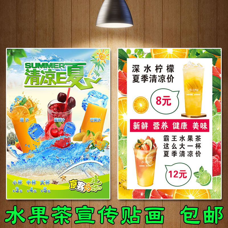 Milk Tea Shop 2021 new promotional advertisement customized summer cold drink juice fruit tea poster poster sticker