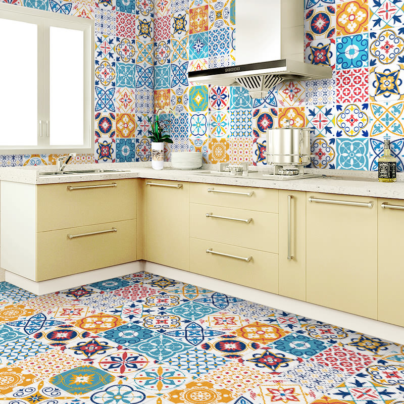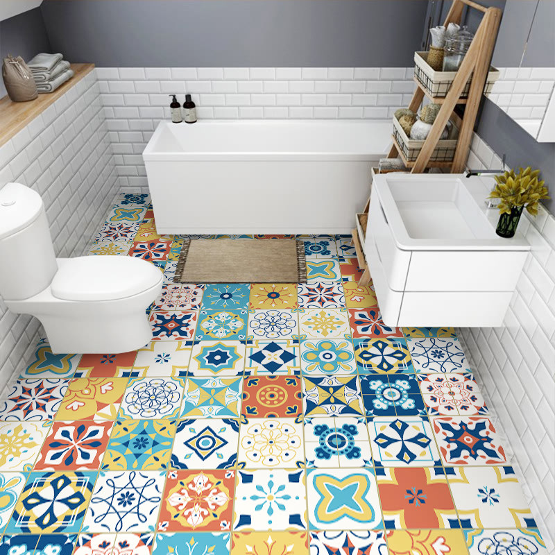 Makeup Room waterproof floor sticker Tile Sticker paper Balcony Kitchen Anti-oil sticker Decorative Flower Brick Floor Sticker self-adhesive wall sticker