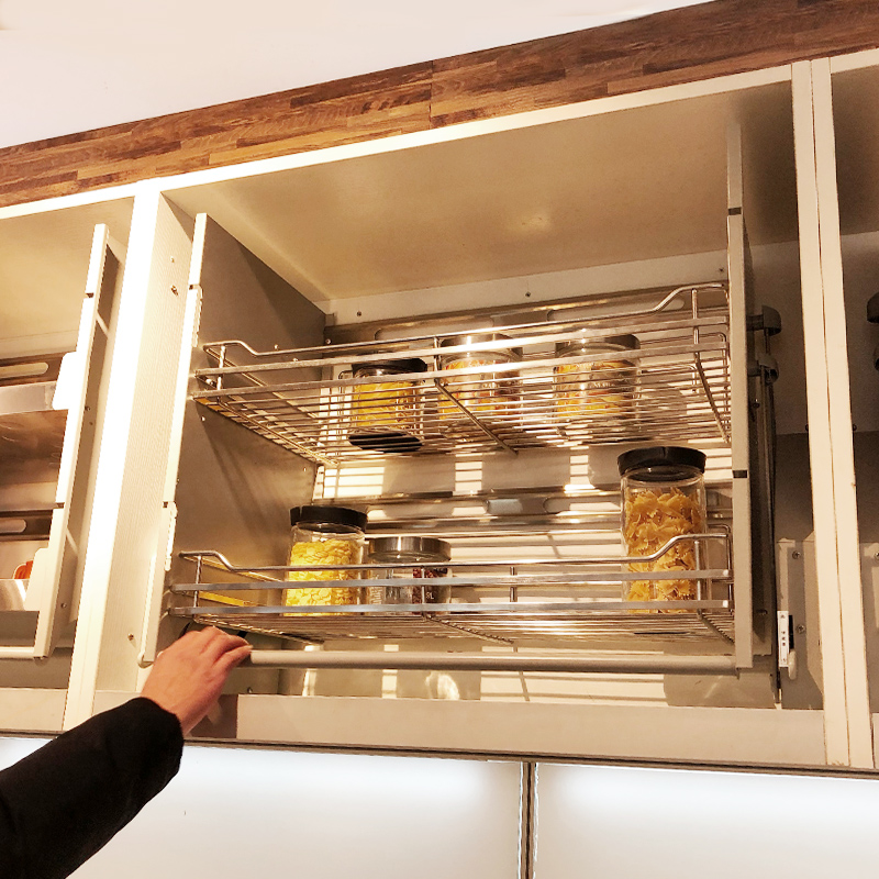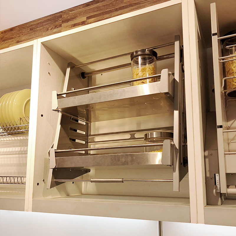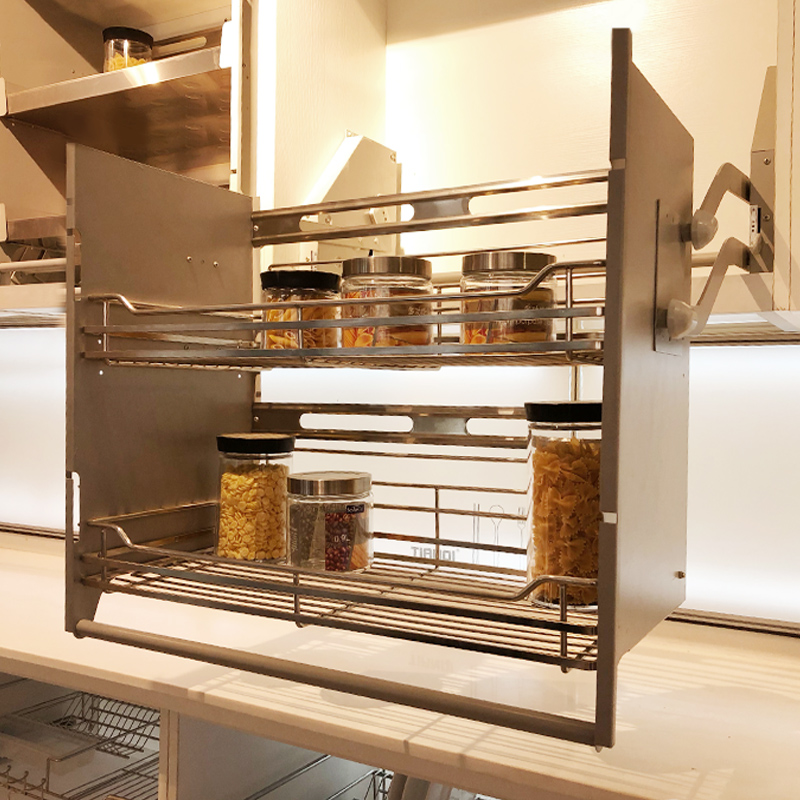 Lifting Pull Basket containing Hanging Cabinet Lower Pull Pull Basket Kitchen Integral Cupboard Stainless Steel Lift Integral cabinet Seasoning Rack