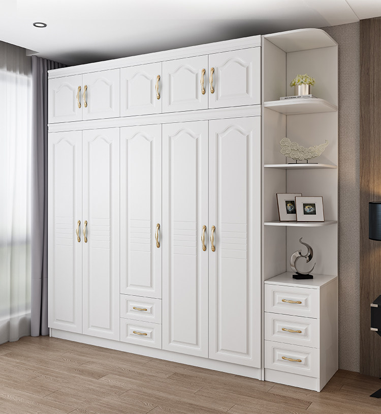 European-style wardrobe modern simple and economical overall combination bedroom cabinet five doors six doors home wooden large wardrobe