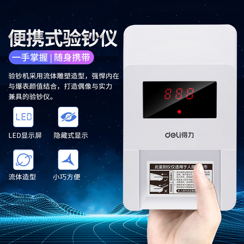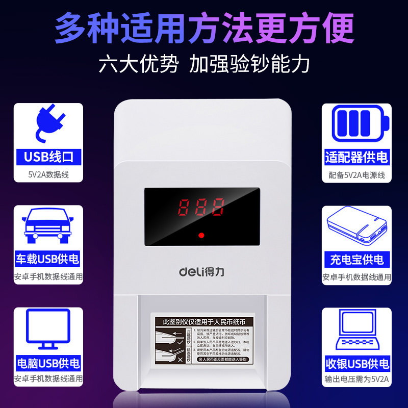 Deli Money Detector Bank Special Money Counter Small Portable Commercial Household Cash Register Money Detector Full Intelligent Voice Mini Support RMB Money Detector Office New Money Counting