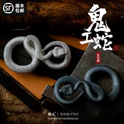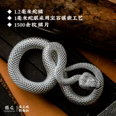 Single silver ghost snake (old model) single Silver Ghost worker snake (primary color type) smiling face key ring with black Silver Ghost worker snake smile key ring with silver original color ghost worker snake silver bead chain meteorite ring big snake