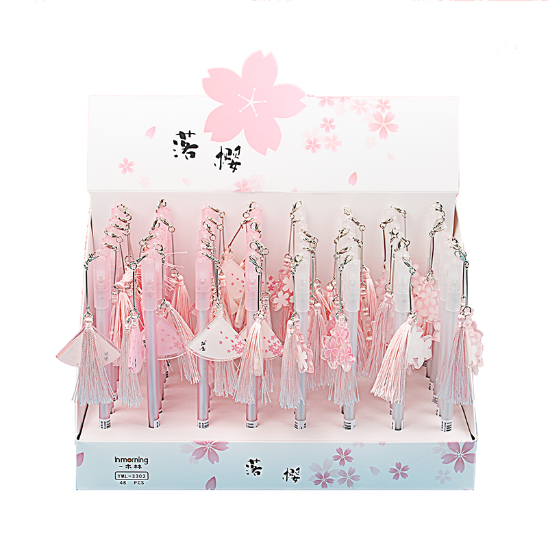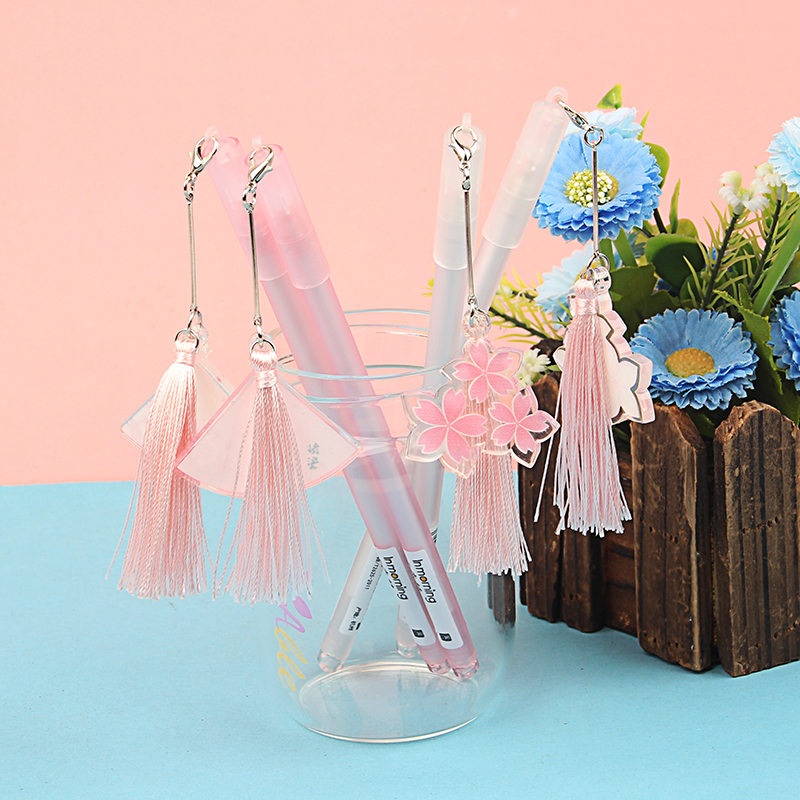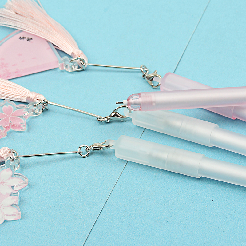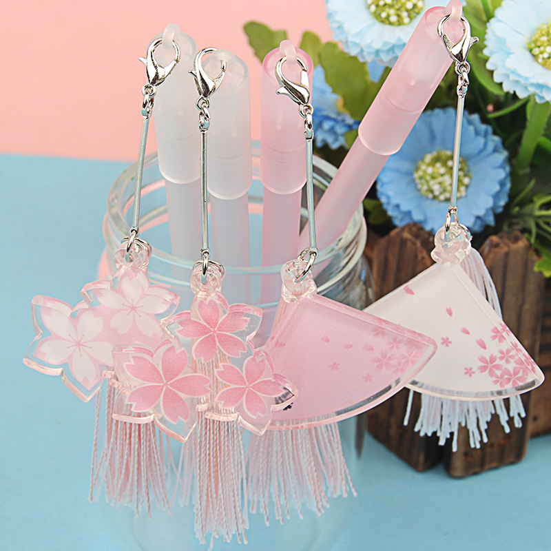 Creative trend Sakura flower pendant gel pen primary and secondary school students 0 5mm full needle cartoon water-based pen cute pink