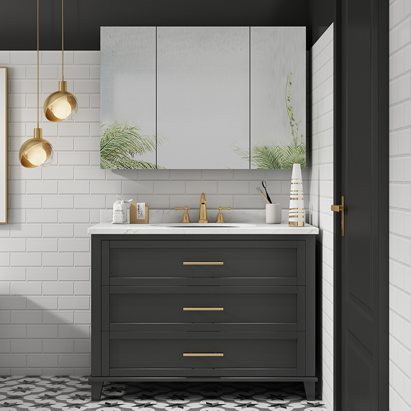 Rain bamboo forest Oak Bathroom cabinet combination Marble countertop Rock board Bath cabinet Washbasin basin cabinet Floor cabinet