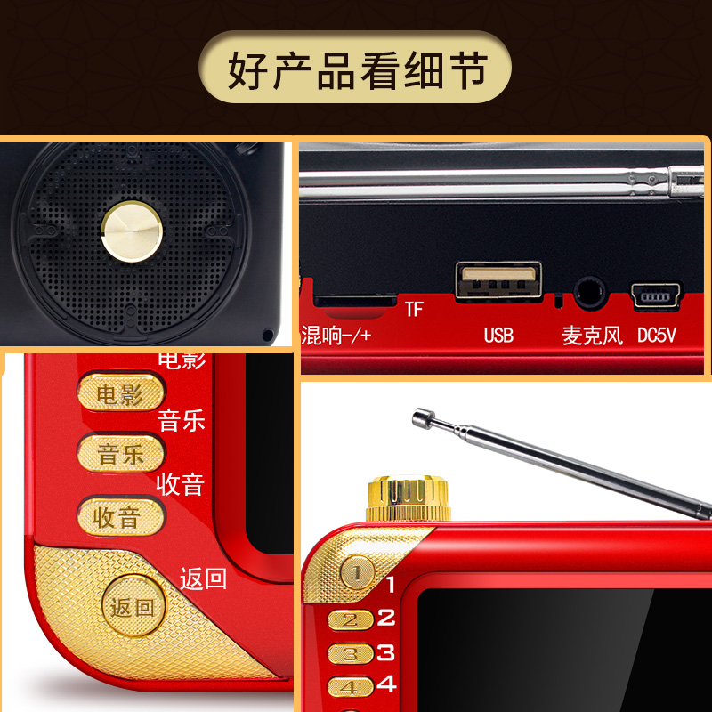 The old man's radio new portable old man's voice player Video Player, visual review, Play Memory, opera songs with charging TV card, simple recording, Walkman, small