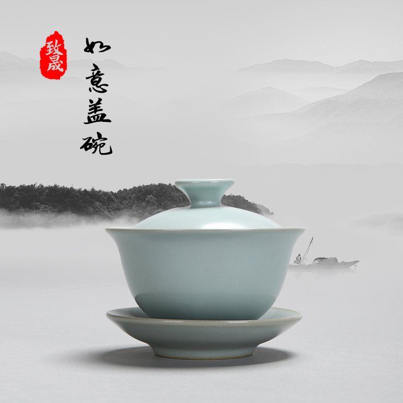 Zhisheng Ruyi Gaiwan Kung Fu tea set Home office three-year-old Gaiwan Large tea bowl Cup Tea cup Toast tea bowl