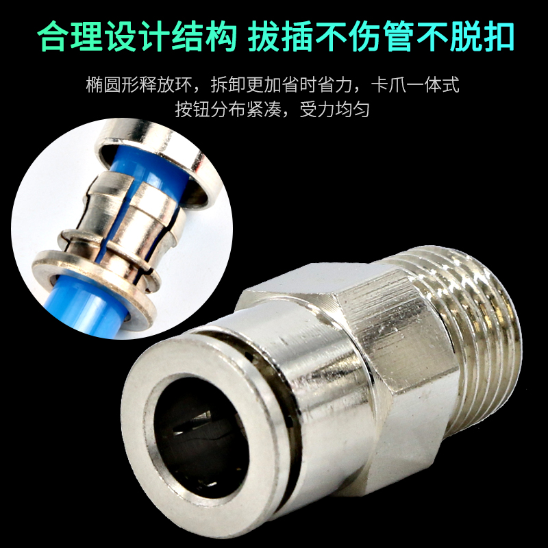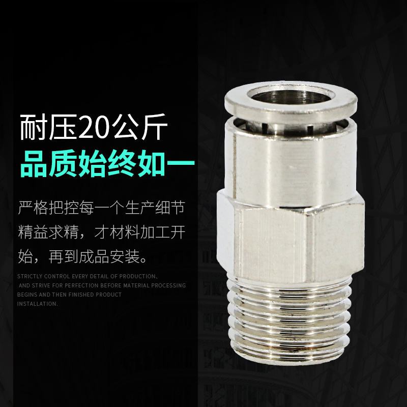 Trachea quick connector pneumatic quick plug all-copper metal cylinder high pressure high temperature resistant PC thread straight-through steam tube quick connection