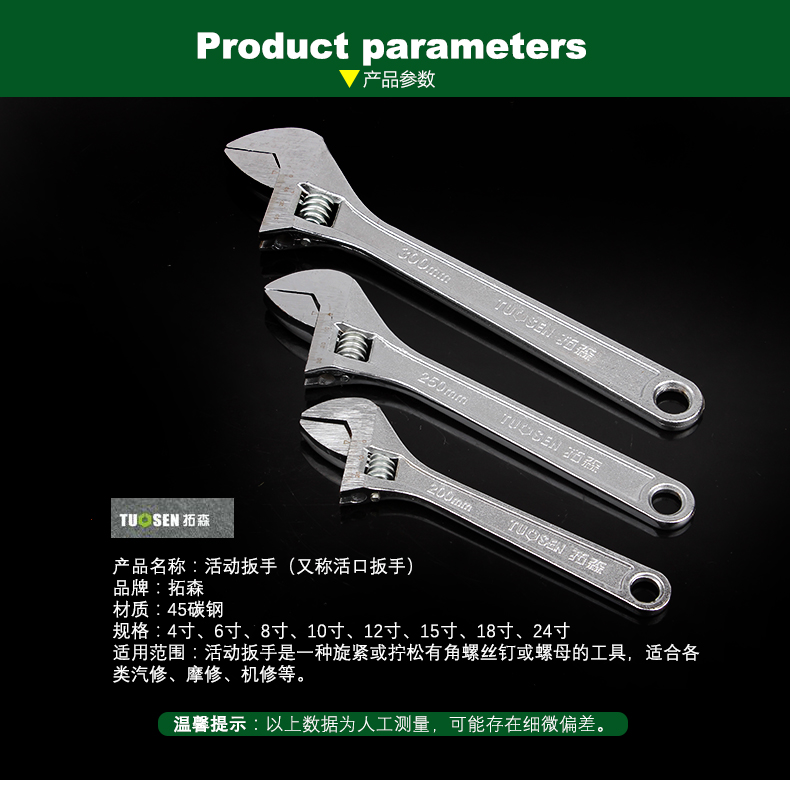 Active Wrench Tool 6 Inch 8 Inch 10 Inch Live Mouth Wrench Adjustable Wrench 12 Inch Live Wrench