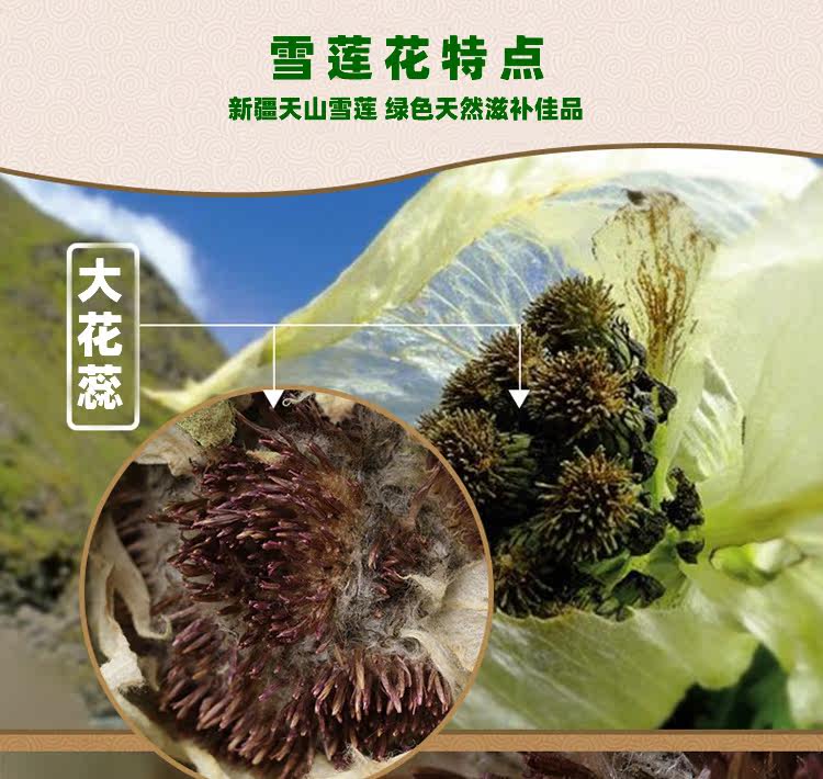 Male nourishing canine Xinjiang special production Tianshan Snow lotus dry flower hair weighs about 30 gr men and women nourishing and bubbling wine material