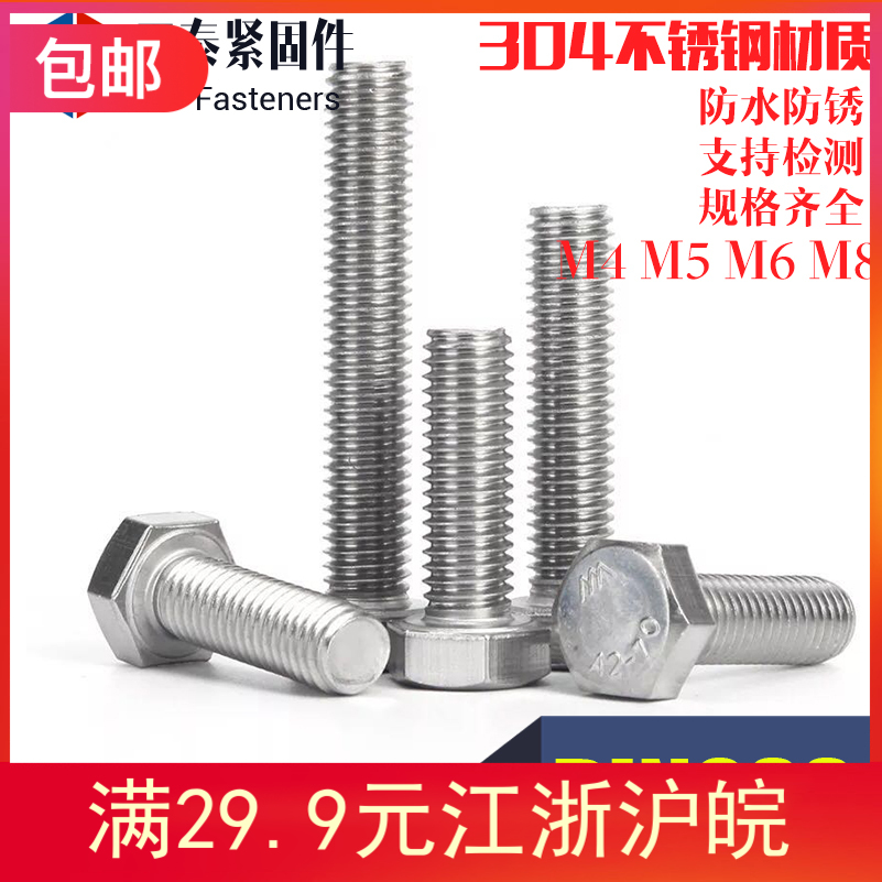 DIN933 stainless steel external hexagonal bolt M4M5M6M8m10 full tooth 304 screw GB5783 ISO4017