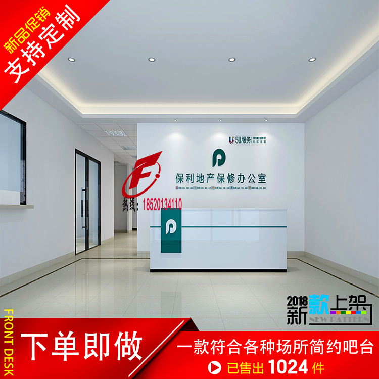 New Baking Varnish Front Office Desk Reception Desk Company Office Front Office Profiled Bar Modern Minimalist Customize