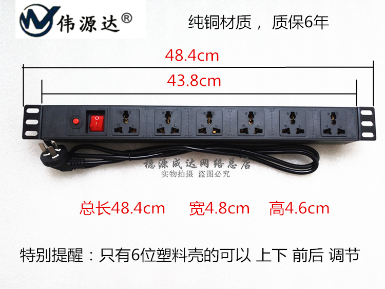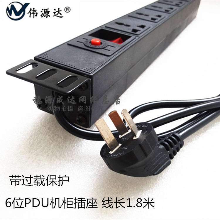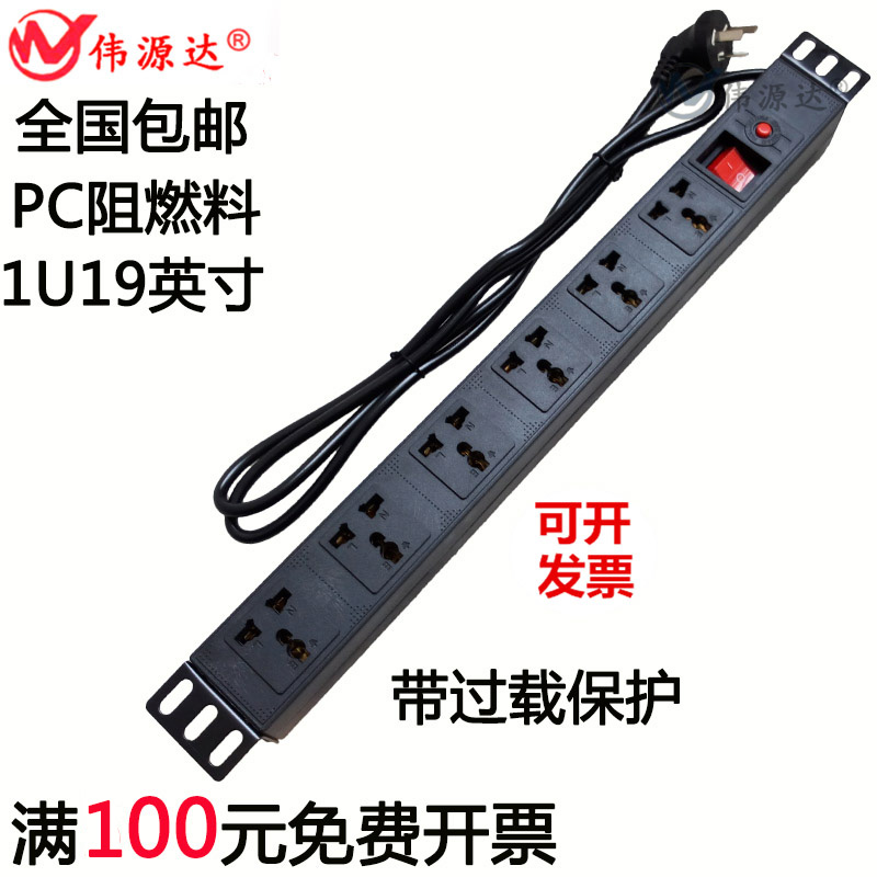 Cabinet PDU socket 8-position row plug 2 meters pure copper wire 6-position 10A switch 2500W overload room power supply wiring board