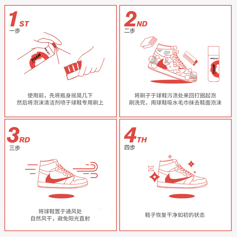 WHITE HOT SHOE WASH Shoe Foam Dry Lotion White Shoe Polish Shoe Brush Clean Free Wash Sneakers Detergent