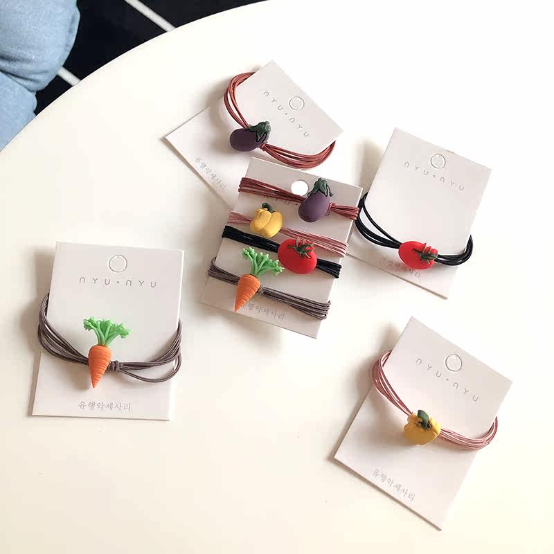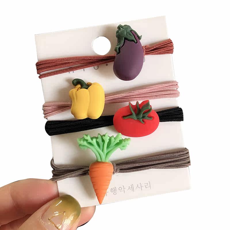 South Korea Nets Red Ins Cute Vegetable Leather Gluten Small Clear New Ring Sweet Hair Rope Hair Ring Hair Accessories For Parent-child Hair Ornaments