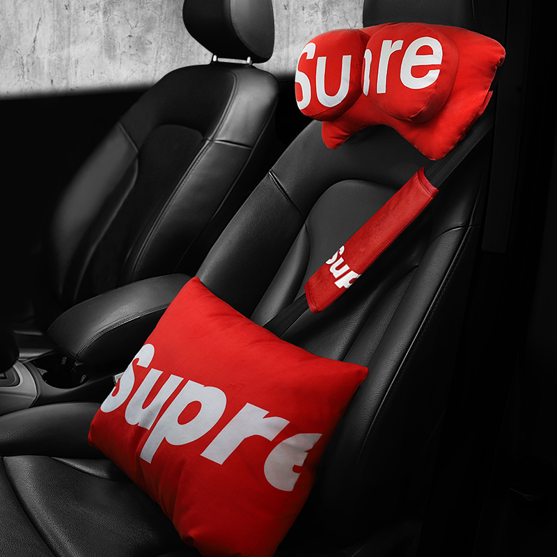 Car pillow leaning against a pillow waist leans against a pair of adorable saddle pads for vehicular cervical spine in-car supplies for neck pillow individuality