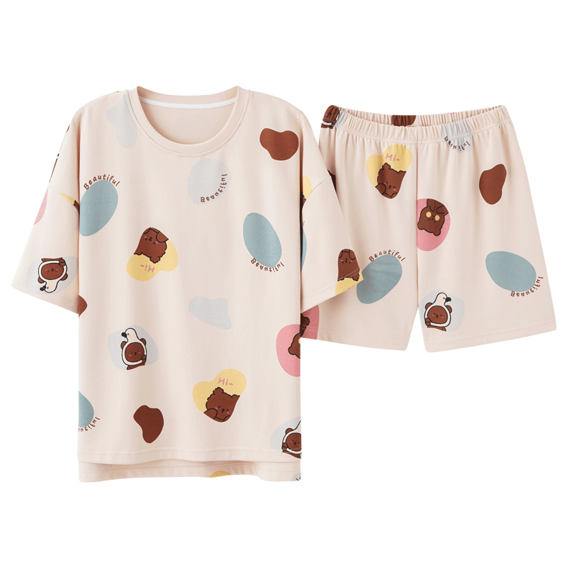 Short-sleeved pajamas women's summer thin cotton suits cute pure vitality girls summer home clothes can be worn outside