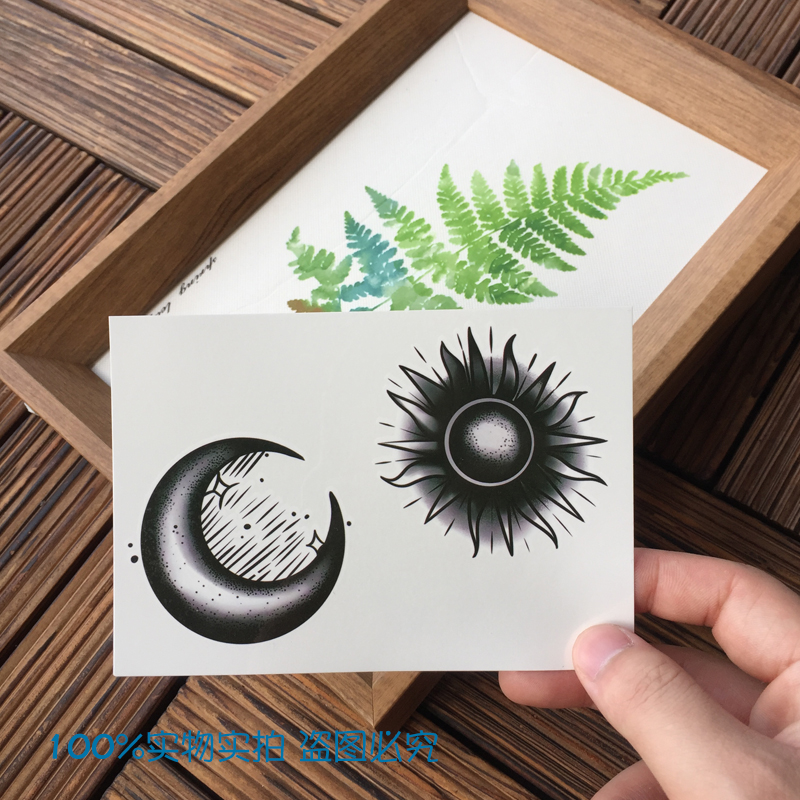 Tattoo stickers sun and moon original black and white wrist arm couple waterproof women and men trendy lasting dark black net red style