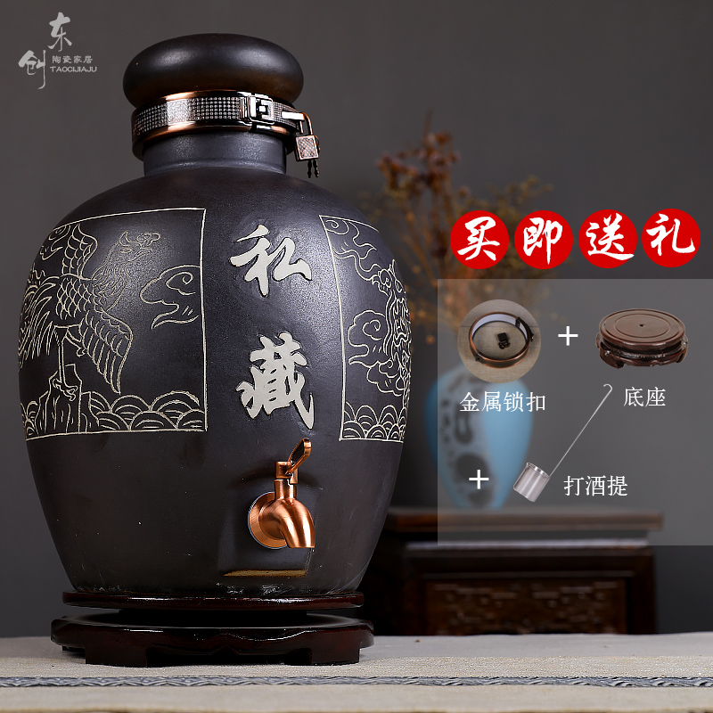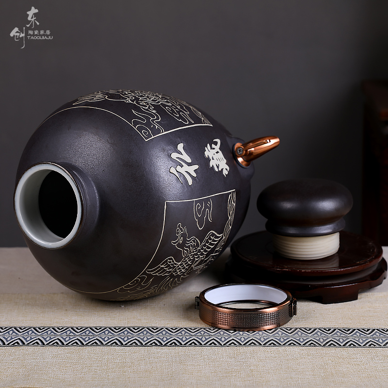 Ceramic carved wine jar antique bubble wine bottle wine jar wine barrel wine barrel liquor wine pot sealed wine jar