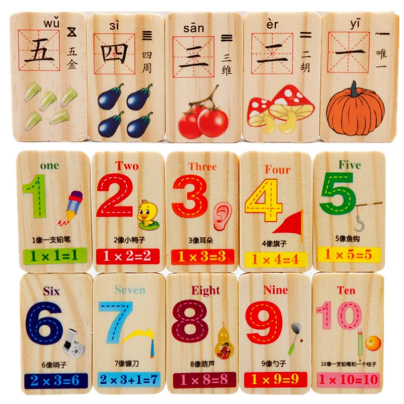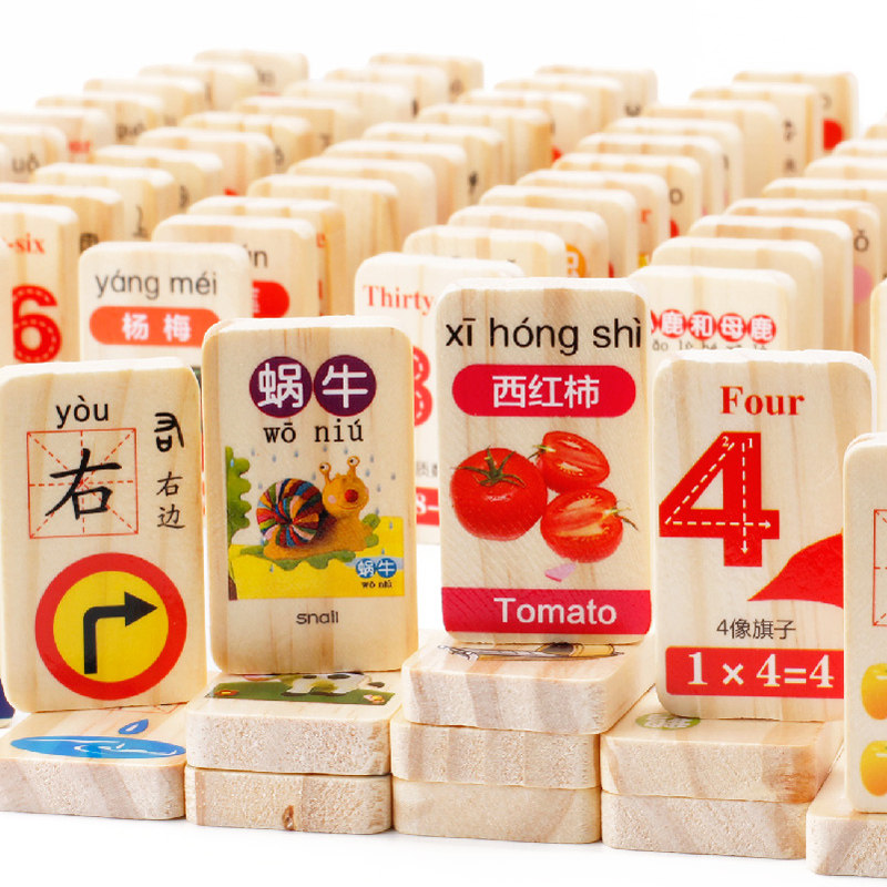 200 slices of double-sided domino (400 patterns) 100 slices bifacial pinyin Digital domino 100 slices bifacial digital Chinese domino 100 slices bifacial digital Cognitive Domino 100 pieces