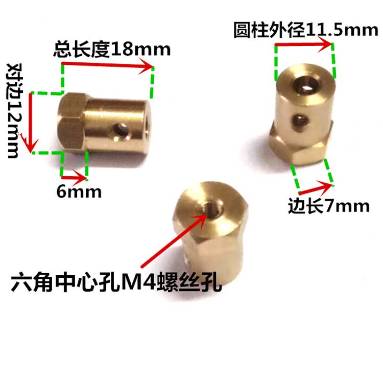 Brass hexagonal couplings side to side 12mm inner diameter 3 4 5 6 7 8mm connected tire DIY trolley machine