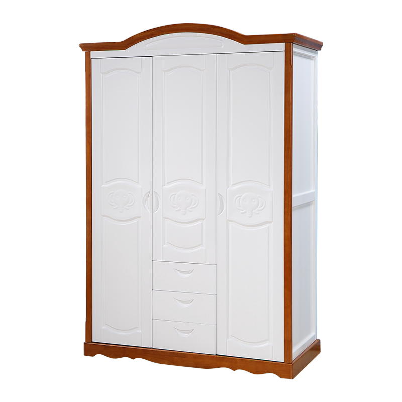 Solid Wood Children Wardrobe Wood Mediterranean Boy Girl Brief Imported Rubber Wood Three-3 Door Closet Combinations