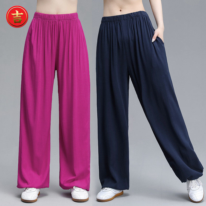 Tai Chi pants Men's and women's spring and autumn and summer elastic silk bloomers Solid color loose pants Martial arts yoga Qigong practice pants