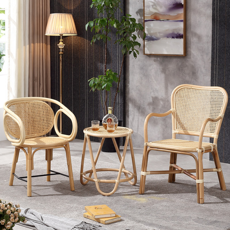 Nordic Balcony Rattan Woven Table and Chair Rattan Chair Dining Chair Rattan Casual Negotiation Chair Coffee Table Three-piece Set Combination