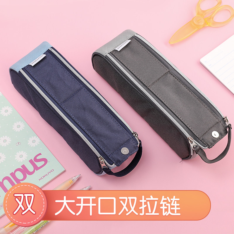 Japan kokuyo Guoyu Double Pull Necklace Pen Bag Multifunction vertical pen holder collection bag Hand primary and middle school students use pencil case minimalist creative pen box WSG-PC112