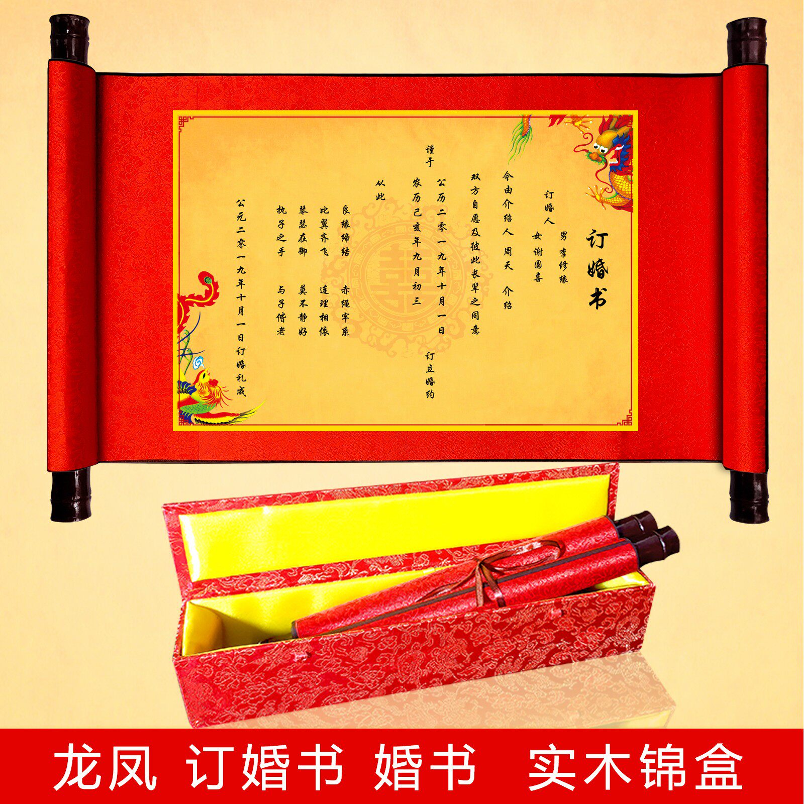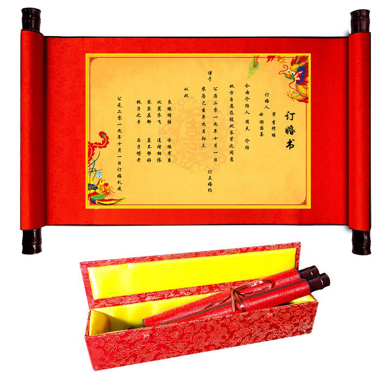 New brocade scrolls New brocade scrolls for wedding book editions of the Republic of China New brocade scrolls for newspapers and wedding invitations New brocade scrolls for engagement versions New brocade scrolls for engagement dragon and phoenix editions New brocade scrolls for engagement standard editions