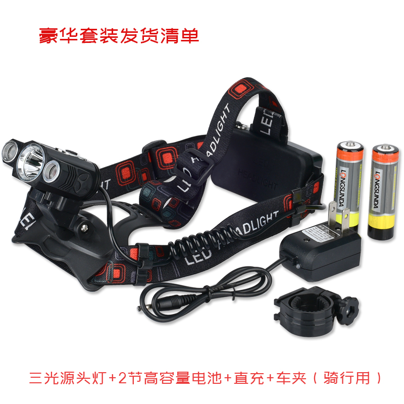 Outdoor ultra-bright headlights can be charged head-mounted flashlight night fishing cycling to grab three lamp headlights