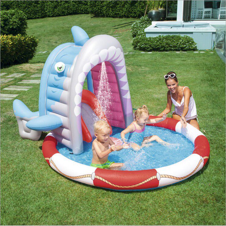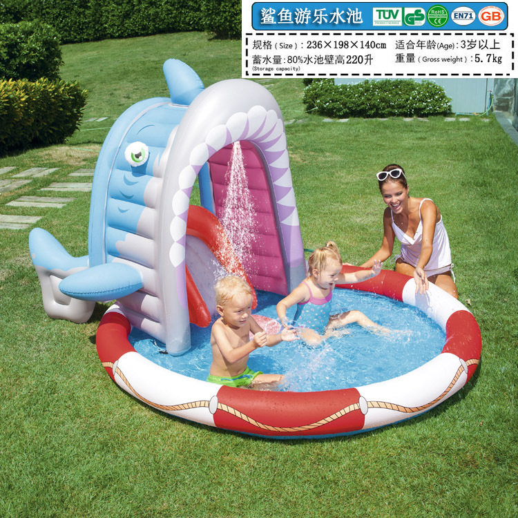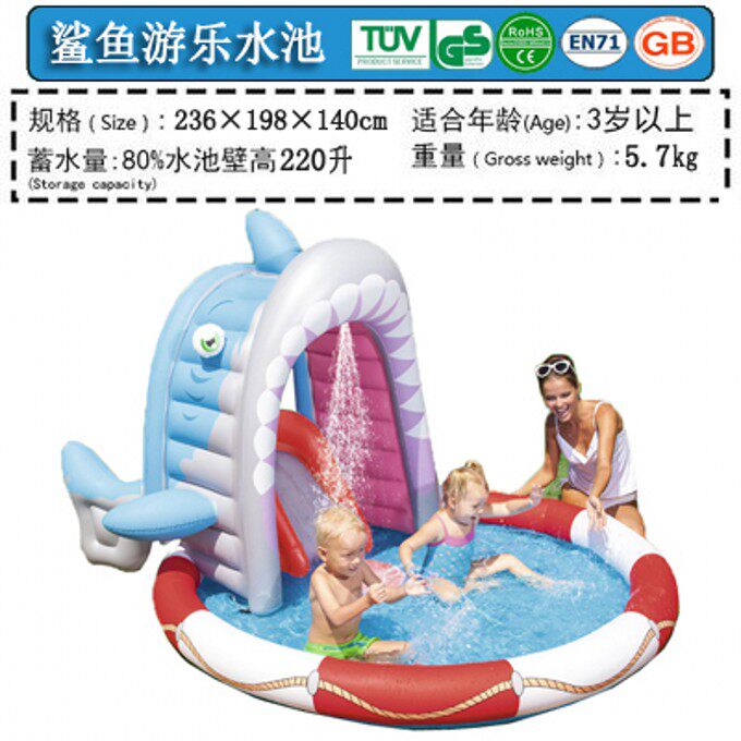 Exported abroad big shark fountain garden family party children swimming pool baby inflatable slide castle