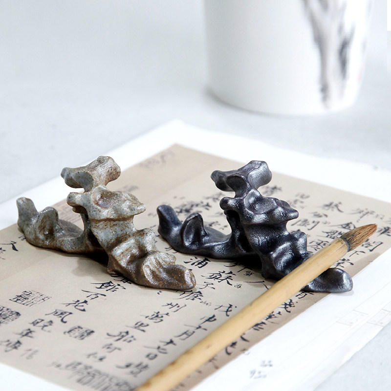 Ceramic Pen Holder Mountain Brush Holder Town Paper Taihu Stone Handmade Mountain Tea Road Wenfang Four Treasure Putting Pen Hill Swing Piece