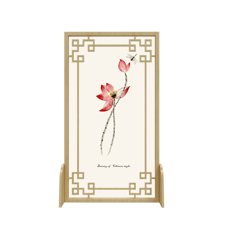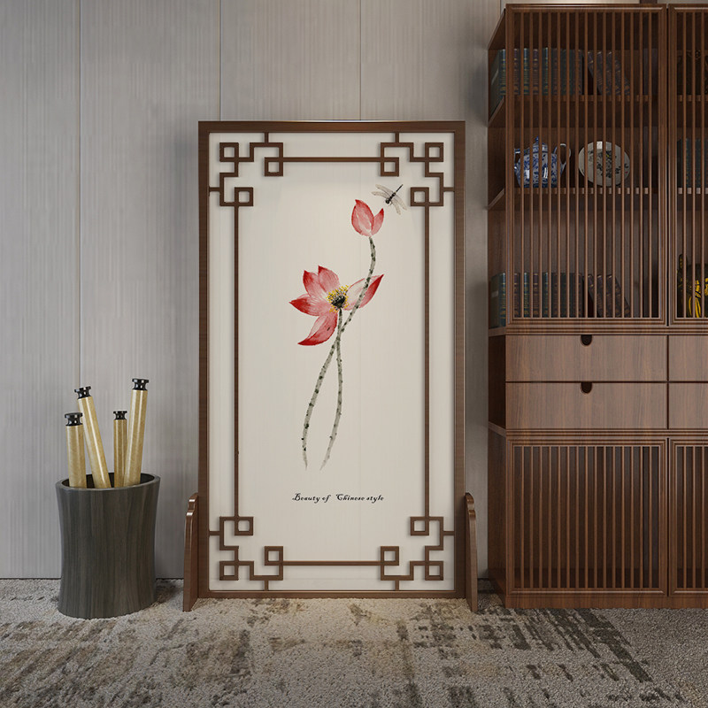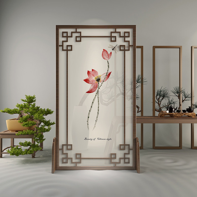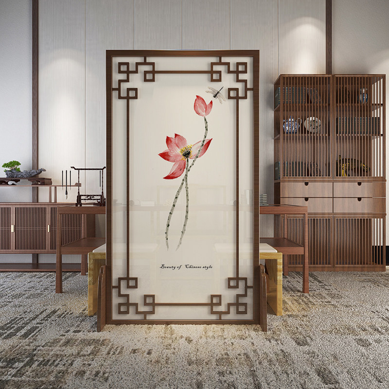 Screen Partition Living Room Solid Wood Modern Chinese Style Ink Lotus Xuanguan Brief About New Chinese Hollowed-out Seat Screen Small Family