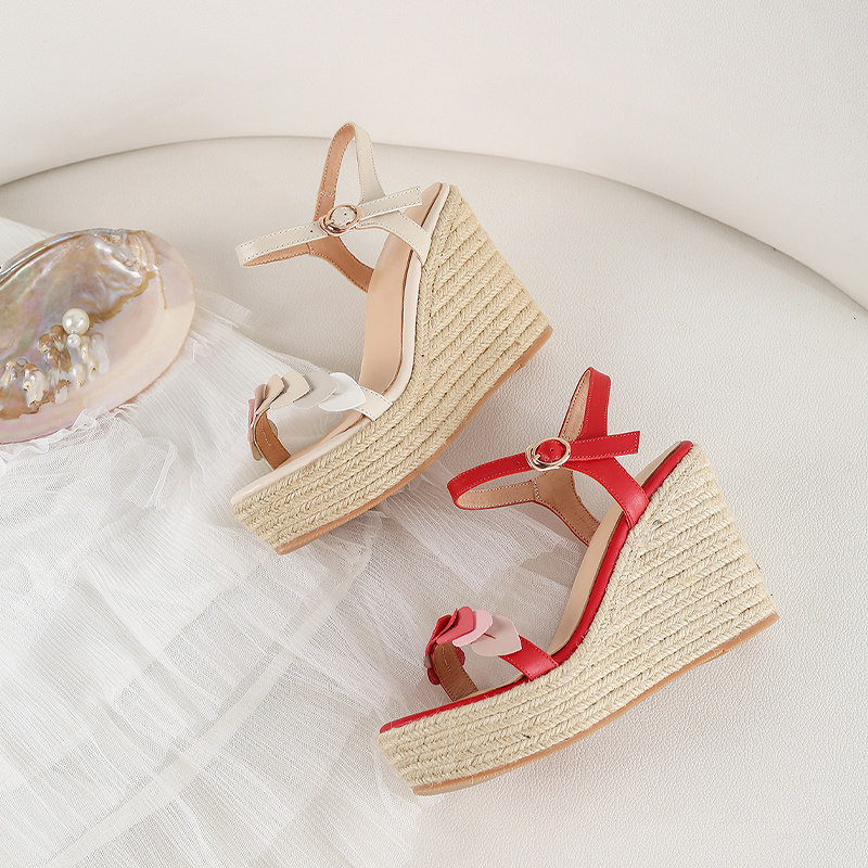 Wedge sponge cake and waterproof platform color matching thin strap combination