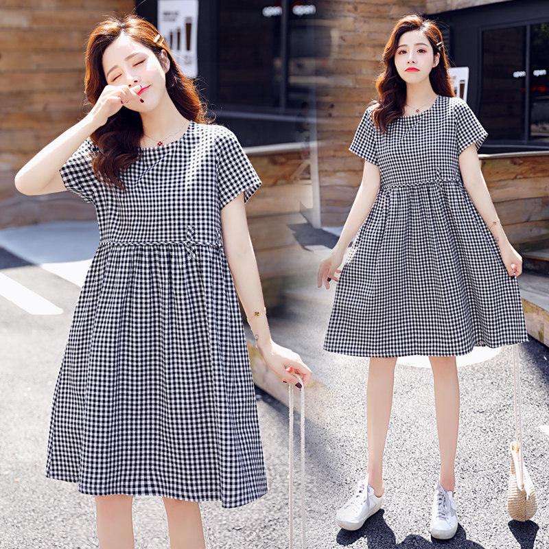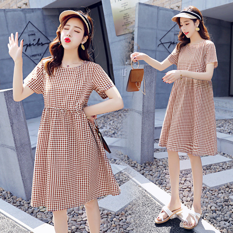 Maternity dress summer dress 2022 new summer fashion suit summer mid-length version loose summer skirt plaid