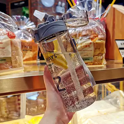 Korean version of simple large capacity suction tube Cup for male and female students children's water Cup portable fresh creative trend plastic cup