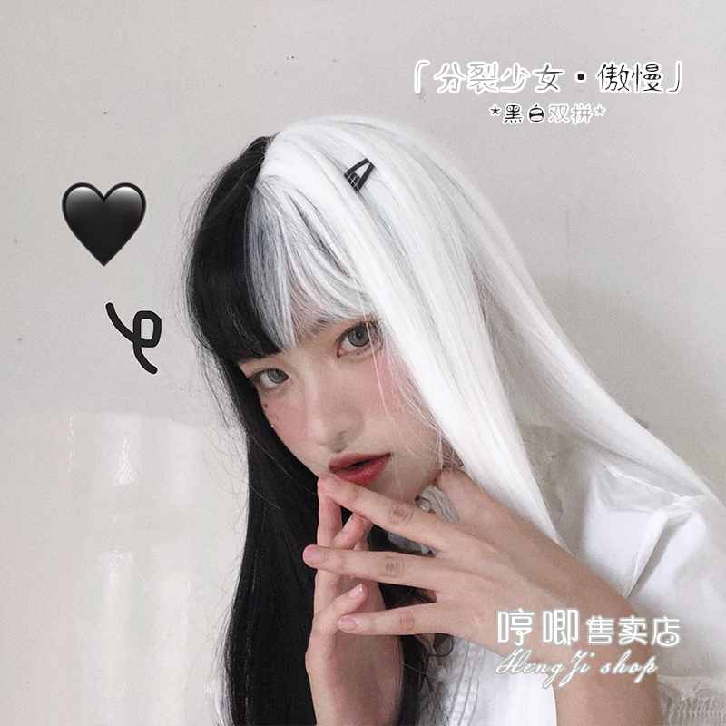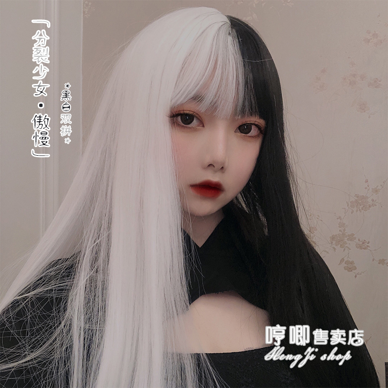 Humming Lolita original Cebu Red "divisive teenage girl arrogance" black and white male and female head Rolyta Gothic long straight hair