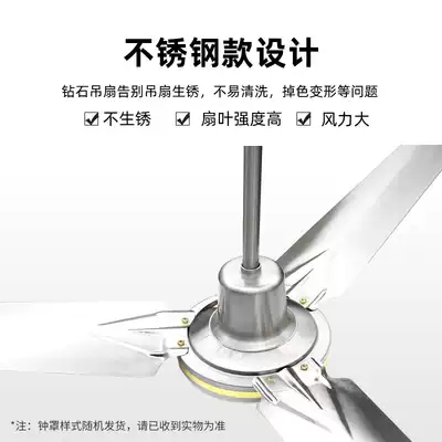 Diamond ceiling fan industrial household living room iron leaf dormitory hanging electric fan dining room light sound large wind stainless steel
