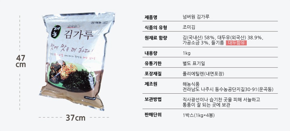 (Whole box)Korea Hainong seaweed crushed 1kg*4 bags of crushed seaweed Commercial seaweed shredded fried rice for bibimbap
