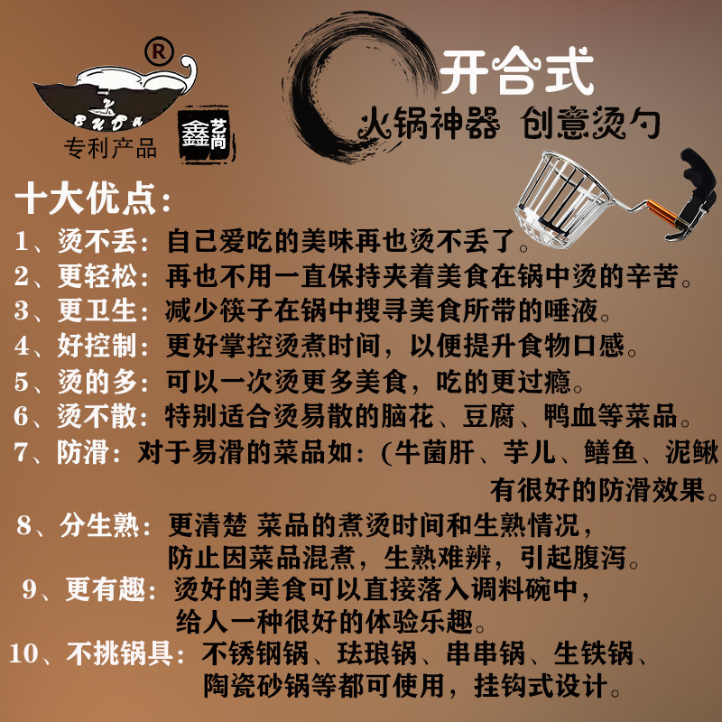 Commercial features thickened stainless steel creative hot pot dish-shabu funnel net red boiled brain flower artifact dish-washing belly hot pot colander