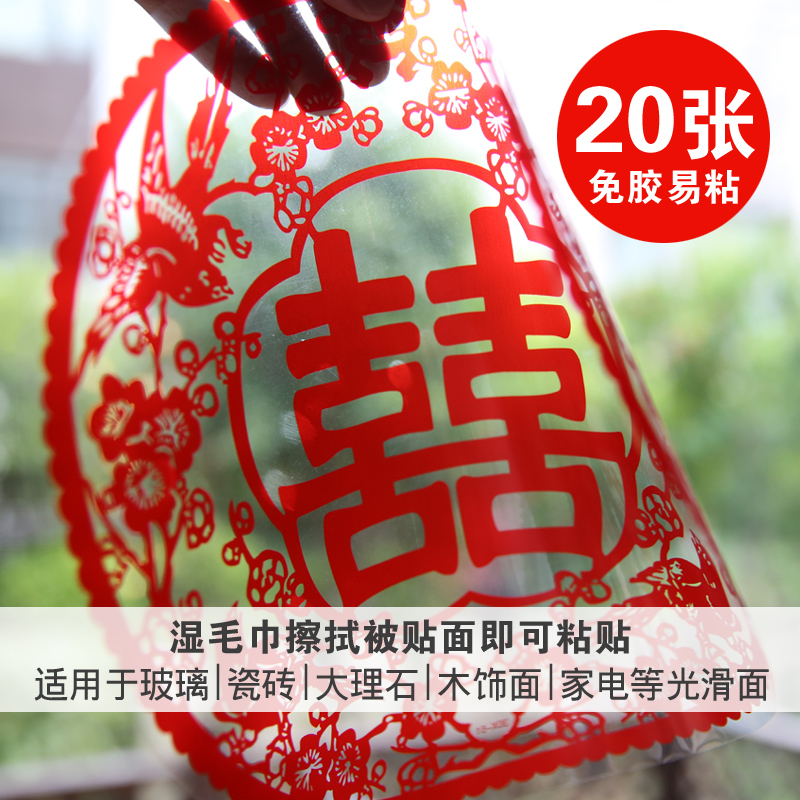 Wedding happy words Spring Festival blessing word electrostatic stickers New year window stickers paper-cut window flower wedding room decoration decoration supplies