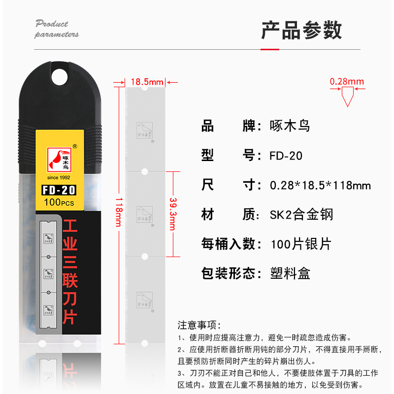 Woodpecker Industry Triplex Blade FD-20 Textile Film Wire Drawing Plastic Breaking cut 3-linked blade