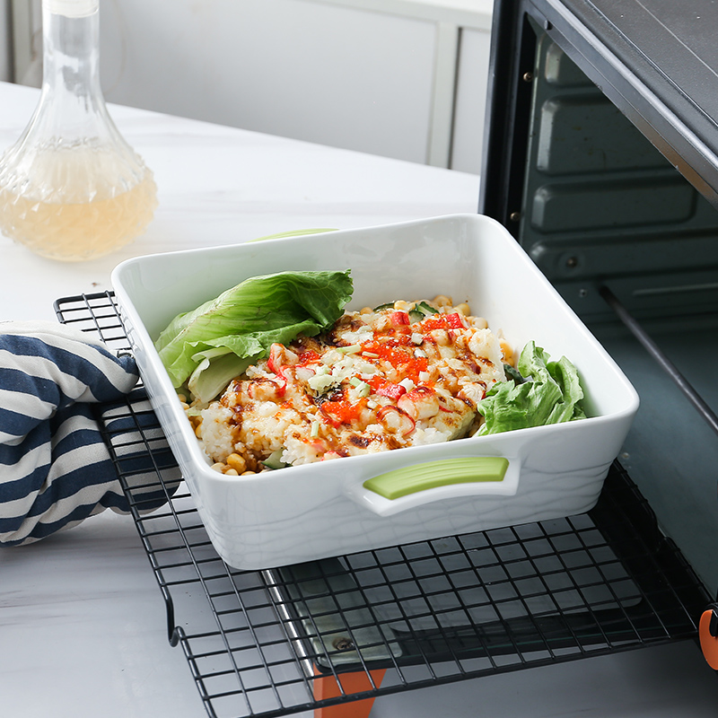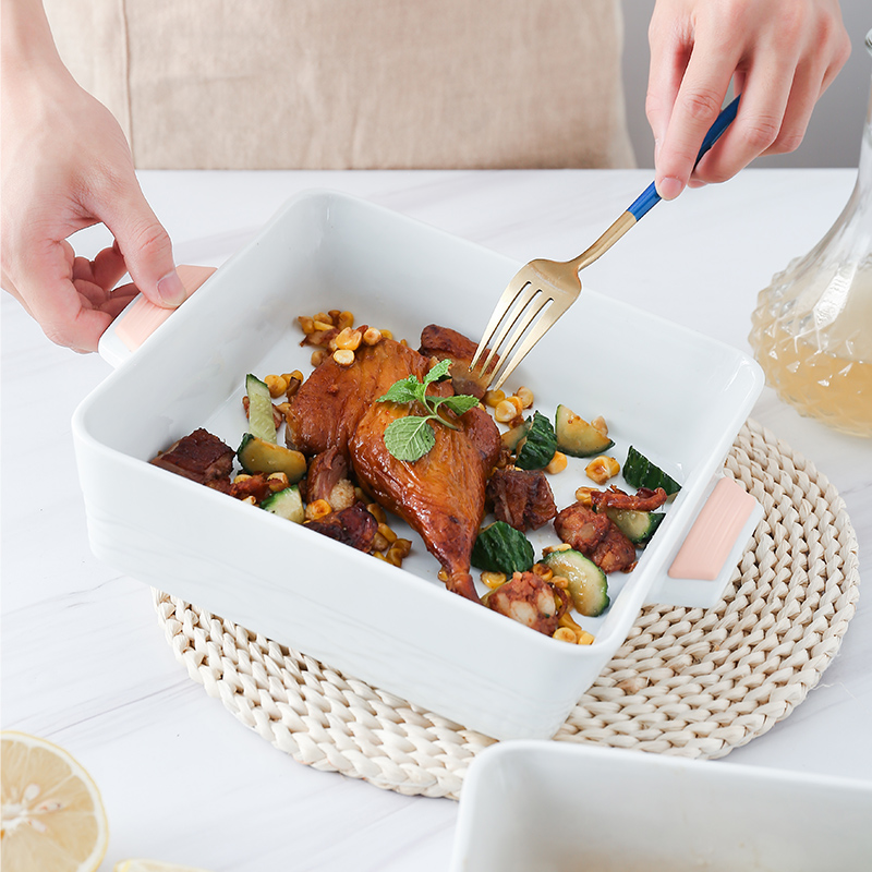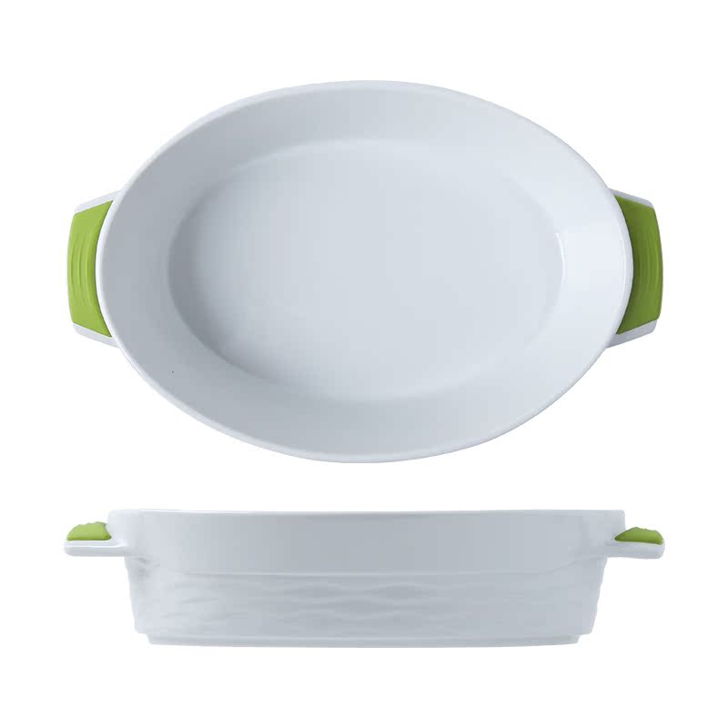 Baking Pan Ceramic Cheeses Baking Meals Pan Western Dining Tray Oven Special Creative Double Ear Silicone handlebar bowls for home