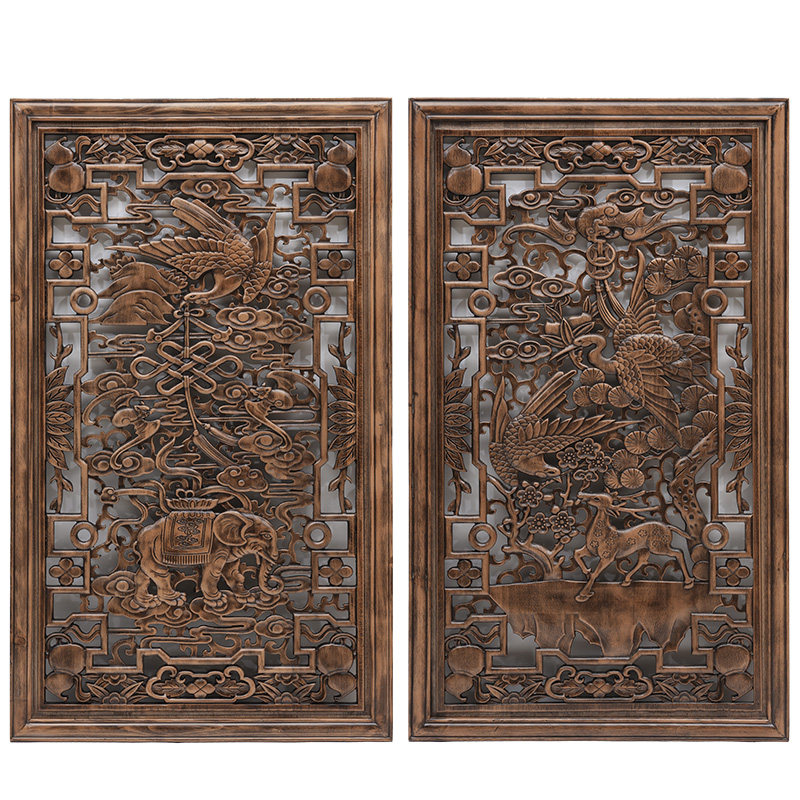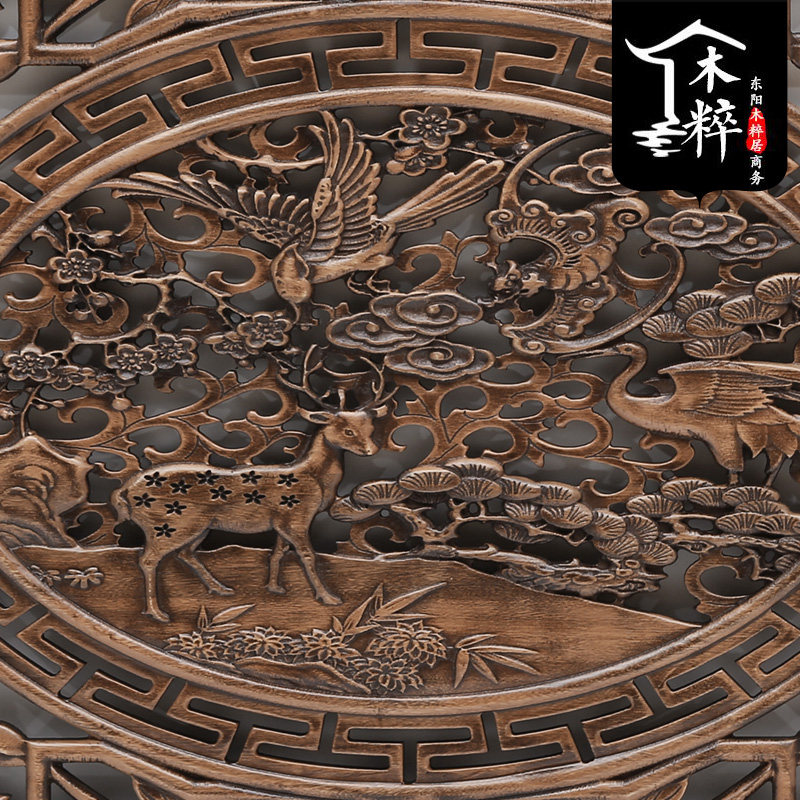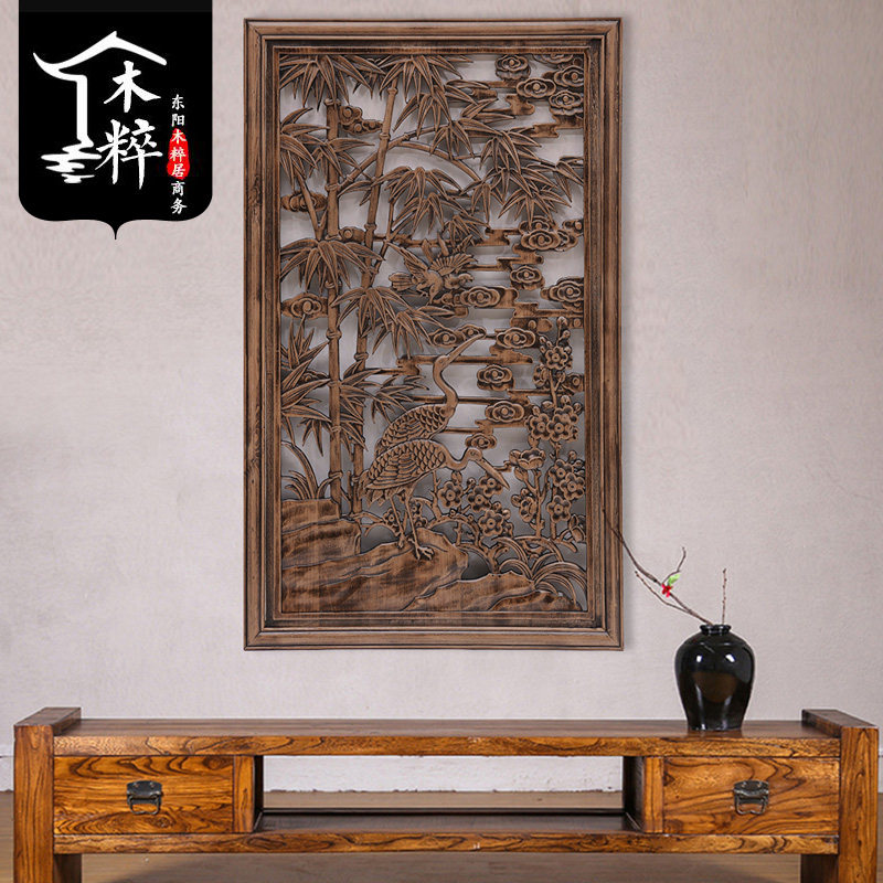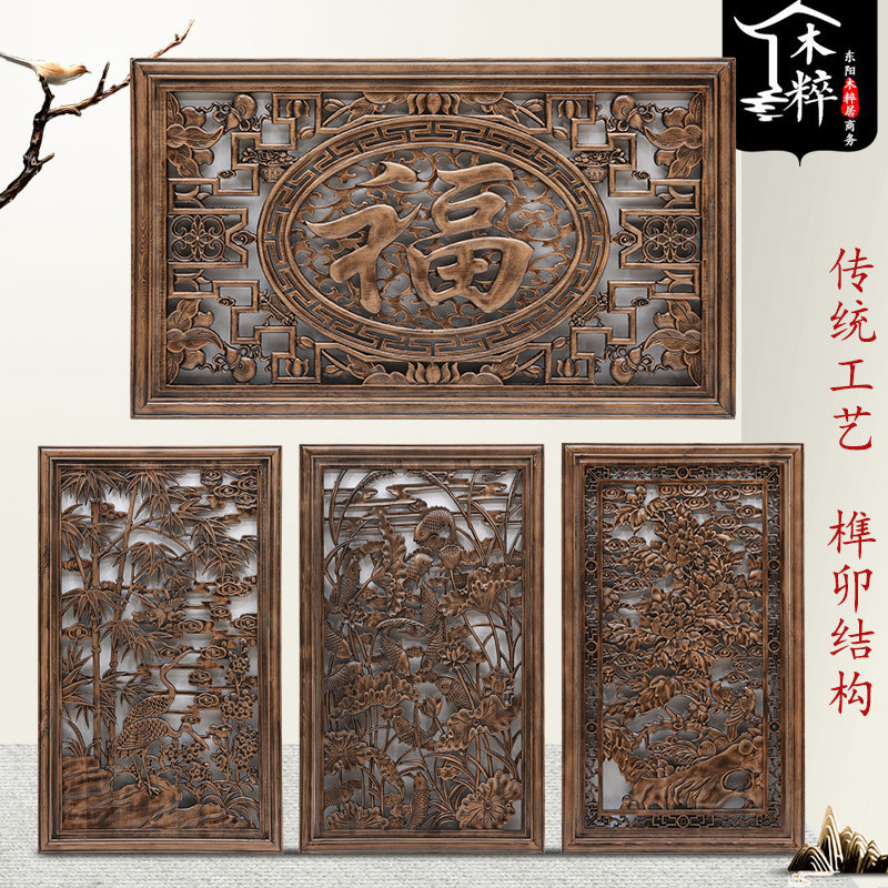 East Yang Wood Carving Pendant Hollowed-out Engraving decorative painted solid wood Imitation Ancient Living Room Background Wall Wall-mounted Hanging Screen-Taobao