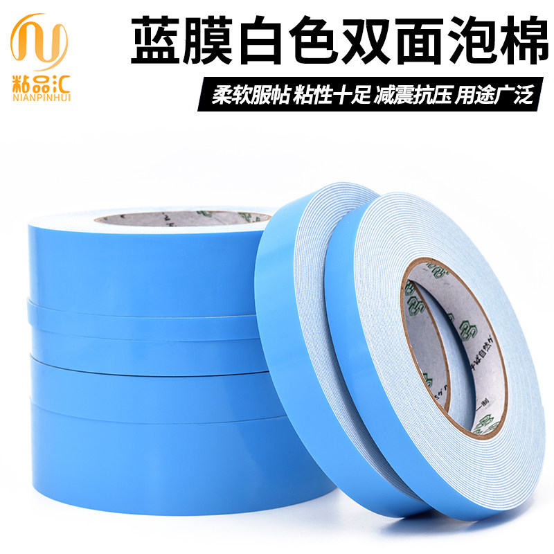 Blue Film White Foam Double-sided Powerful Super Stick Sponge Thickening Signage Nameplate Fixed Patch Wall Office Supplies White Advertising Foam Photo Frame With High Viscosity Waterproof Wide Double-sided Adhesive Tape