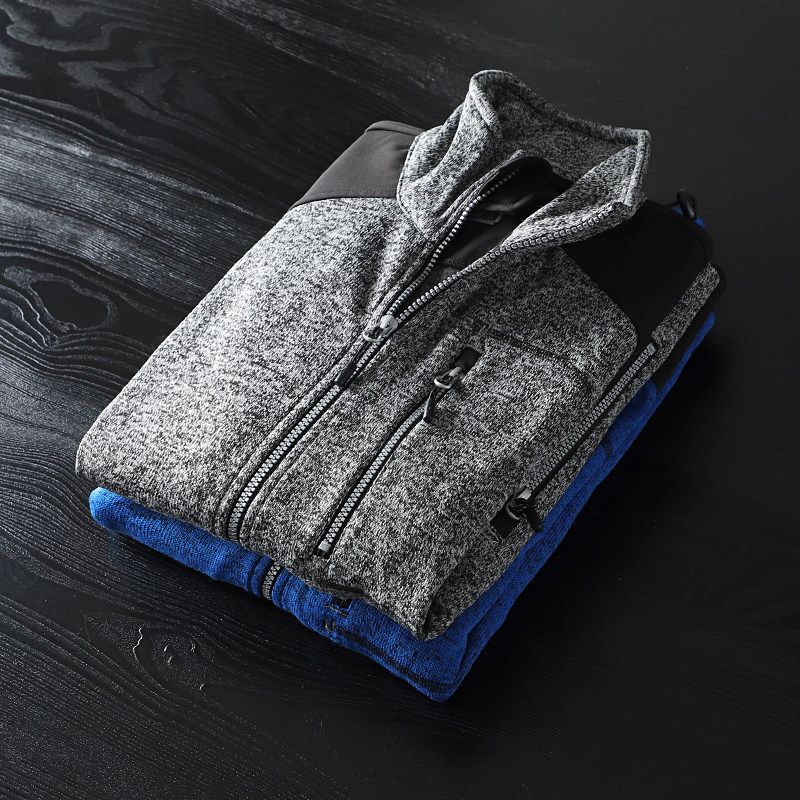 Foreign trade export tail single spring and autumn outdoor sports stand-up collar knitted jacket Original single cut standard cattle goods tide brand stitching jacket