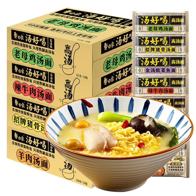 (5 packs) Old hen soup noodles (5 packs) sign pig bone soup noodles (5 packs) spicy beef broth noodles (24 pack combinations) Old hen 12 sign pig bones 12 (24 packs whole box) Old mother