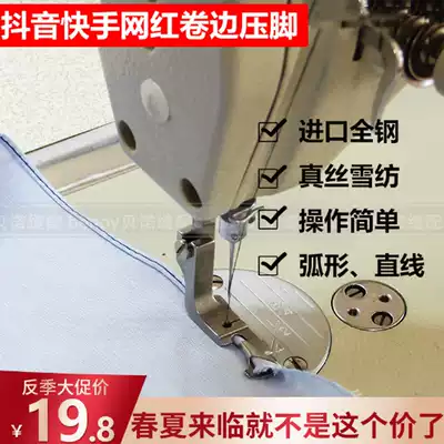 Shake the sound quick hand with the same net red curved crimping presser foot silk chiffon skirt hem crimping device pull tube import
